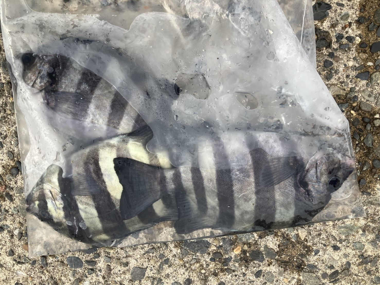 イナダ 40cm0~1匹、メジナ 32cm~34cm0~2匹、シマダイ 20cm前後0~5匹