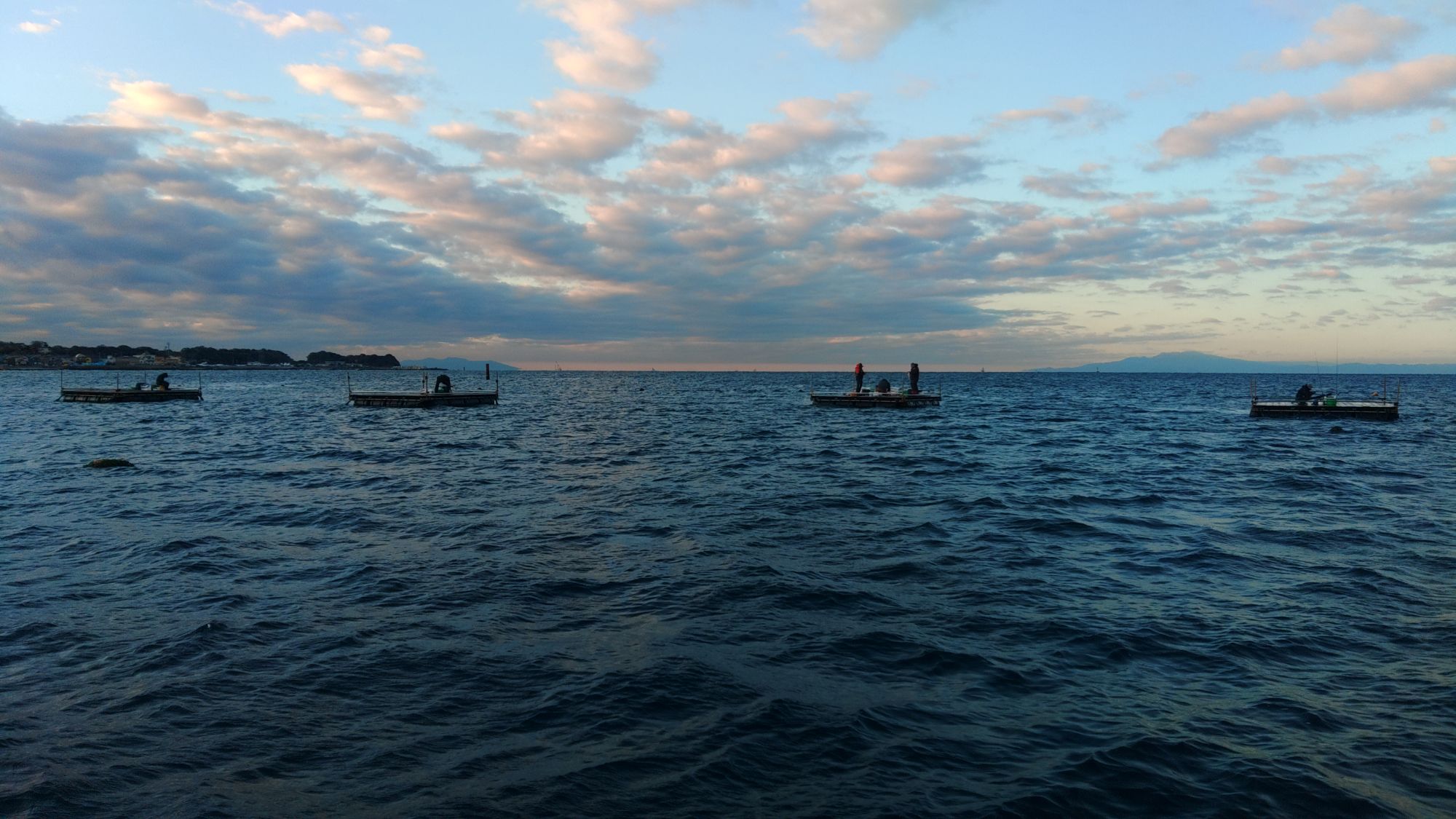 晴れ、水温19度、薄濁り、北の風
